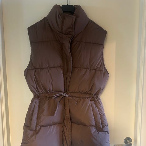 Floyd vattert vest i brun farge, uten ermer, med elastisk midje og sidelommer. Vesten er i størrelse medium og laget av syntetisk materiale. Egnet for bruk som et isolerende lag i kaldt vær.