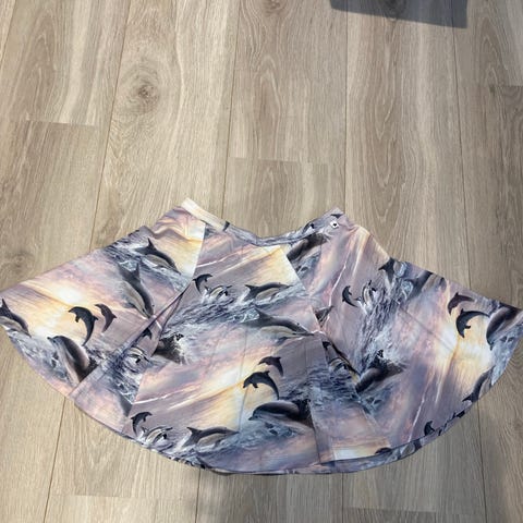 Selger et helt nydelig skjørt fra Molo. Det er i en vakker mørk blåfarge, A-linjeskåret og med to lommer foran. Det er litt tyngre i stoffet og har derfor et nydelig fall. Det har vært superpopulært her i huset de få gangene vi fikk brukt det.