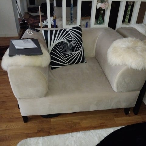 Putetrekkene kan vaskes i vaskemaskin. Armholderne er skitne, jeg sølte biola. Derfor gis den bort. Kan renses med klut.