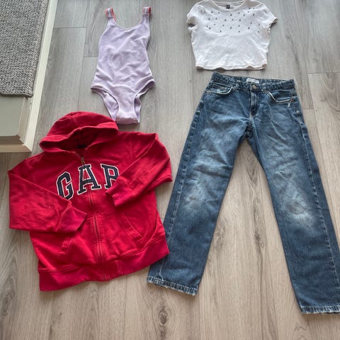 Nydelig kjole med knepping bak, nattdrakt og genser selges samlet for 50,-kr.
