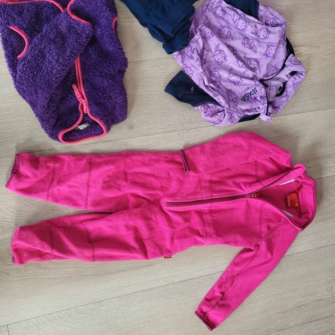 Tre sett i fleece. Godt brukt alle sammen, men ingenting er ødelagt eller tynnslitt. Perfekt for å ha å bytte med i høst-/vinterværet.