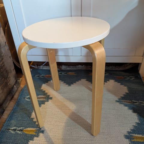 Stabil krakk med et sete i førsteklasses skinn av sel og fire stålbein. Krakken kan brukes når man trenger en ekstra sitteplass, og er alltid et elegant blikkfang i det designbevisste hjemmet. Kjøpt på interiør butikk.