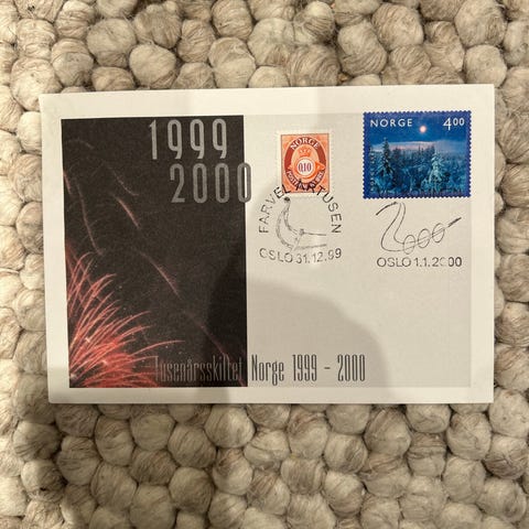 Norge 1999-2000 Førstedagsbrev med poststempler fra Oslo. Samlingen inkluderer frimerker med motiv av fyrverkeri og norsk natur.