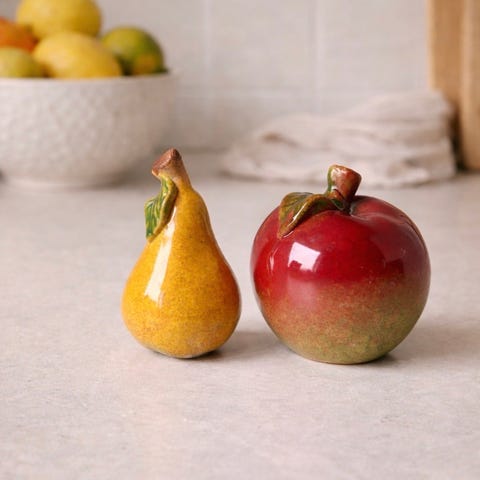 Søte miniatyr frukter, kunstig frukt (trolig i noe slags plast, men veldig naturtro)