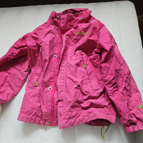 Mye brukt jakke, men også mye jakke igjen. Veldig praktisk helårsjakke. Holdende meste av vær og vind ute. Bildene viser en liten rift ved en av lommene i front.