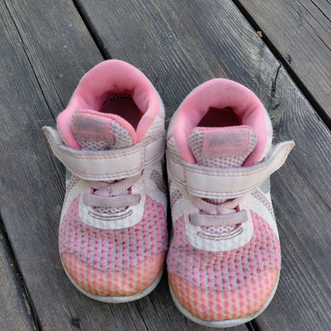Pent brukte Nike joggesko med borrelås. Brukt i gymtimene på skolen, og kun innendørs. Veldig lette og gode sko. Litt svarte inni hælkappen.
