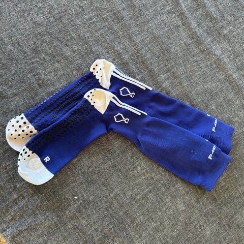 Blå fotballstrømper fra Craft, brukt én gang, ligget i skuffen siden. Str 28-30.