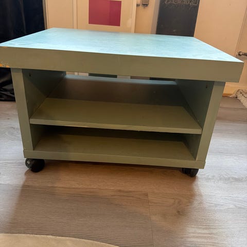 Solid small table / TV stand / with wheels