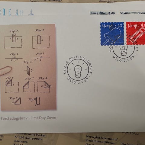 Samling av seks førstedagsbrev med ulike frimerker og motiv. Brevene viser forskjellige poststempler og illustrasjoner, inkludert kunst, julemotiv og historiske temaer. Passer for frimerkesamlere og posthistorieinteresserte.
