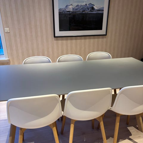 Lite brukt bord, beinene er litt stygge etter teip. Dette kan sikkert vaskes bort. Bordet passer best til 3 personer.