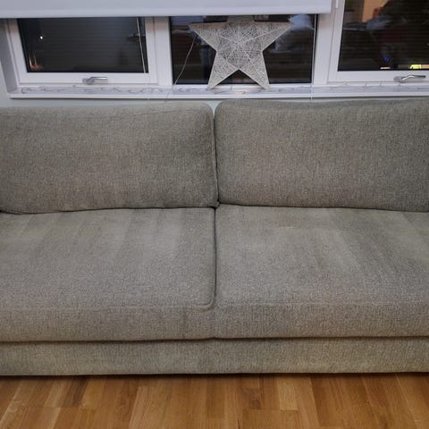 Grå toseters sofa trukket i tekstil velur. Sofaen har to ryggputer og to sitteputer som gir komfortabel sitteplass. Passer for stue eller oppholdsrom hvor en kompakt sofa ønskes.