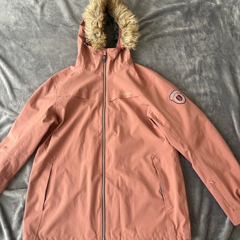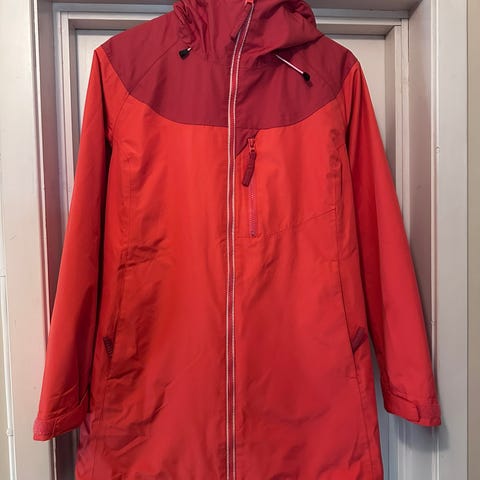 Korallfarget/oransje. Pent brukt, noen få bruksmerker. Vann- og vindtett.