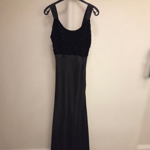 Festkjole, ballkjole, aftenkjole, svart, fotsydd, paljetter