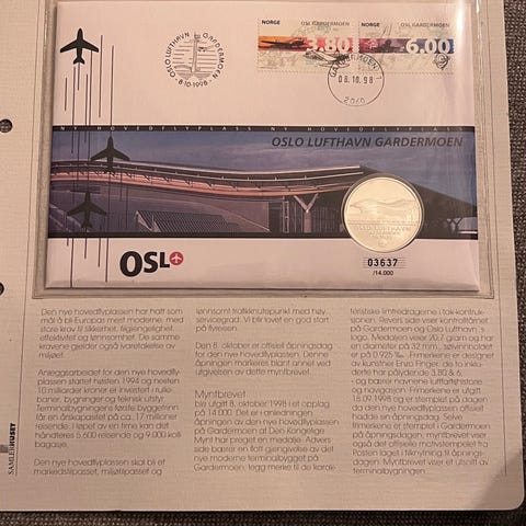 Postkortet er ubrukt men frankert og stemplet Oslo Lufthavn Gardermoen 8 - 10 - 98. Kom gjerne med et prisforslag.