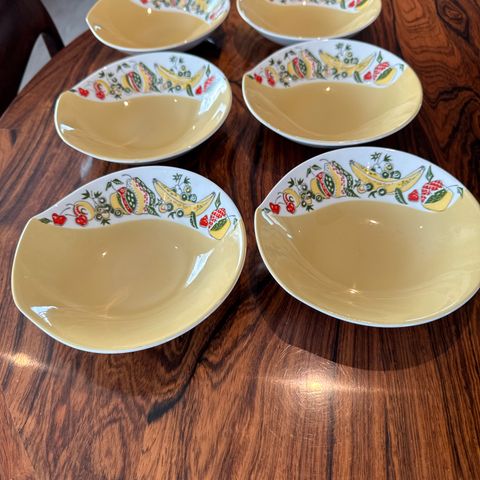 Fatene er meget pent brukt, ingen synlige striper eller skår. De er utrolig kjekke å ha til jul, eller andre selskaper, gjerne kombinert med andre typer serviser😊. Fatene er 38 cm lange, 24 cm brede.
