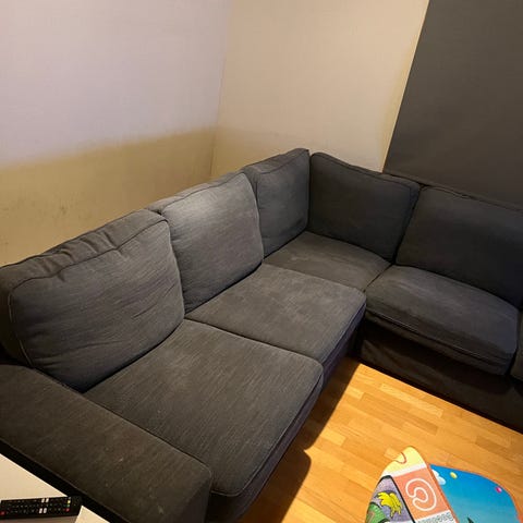 Sofaen har polstrede seter og ryggstøtte for komfort. Egnet for stue eller oppholdsrom.