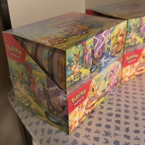 Hei! Selger Pokémon Prismatic Evolutions Mini Tin Display