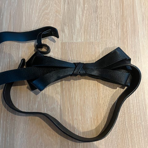 Petroliumfarget knytebelte, belte til å knyte i livet.