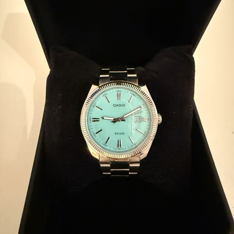Funksjoner: Liten sekundviser, selvlysende visere og timer, 5ATM vannresistens, gjennomsiktig bakside