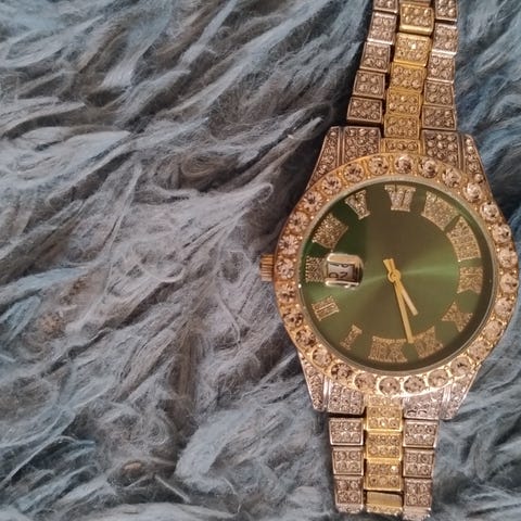 Klokka, liten brukt,som ny med diamant.