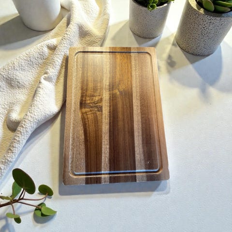 Gi kjøkkenet ditt et løft med vårt høykvalitets skjærefjøl i akasietre! Dette elegante og funksjonelle brettet er laget av naturlig akasietre, kjent for sin holdbarhet og antibakterielle egenskaper.