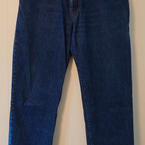 Jeansene er for menn, men de sitter fint på jenter også. Usikker på størrelsen siden det ikke står på, men sitter løst på en dame med størrelse S, så vil anta at den er en M/L.