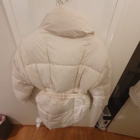 Vero Moda vinter jakke i blå farge, størrelse M for kvinner. Jakken har hette med fuskepels, elastisk midje og lommer med klaff. Materialet er egnet for utendørs bruk og har ribbede mansjetter for ekstra isolasjon.