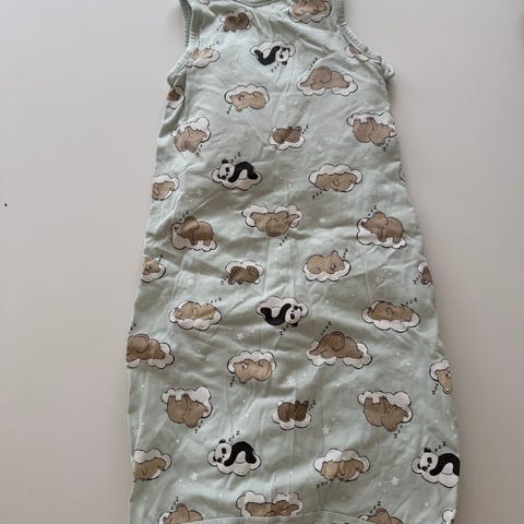 Pent brukt sovepose fra HM. Søtt mønster med sovende dyr, lyseblå farge. Størrelse 62/68. TOG-verdi 2.0, typisk helårspose, dog ikke til de kaldeste elle varmeste nettene.