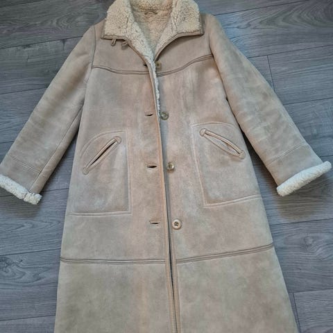 Denne lekre saueskinnkåpen er laget med ekte skinn og pels av New Zealand-sau. Str XS. Pent brukt. Har kun en liten rift i innerforet(se bilde 4).