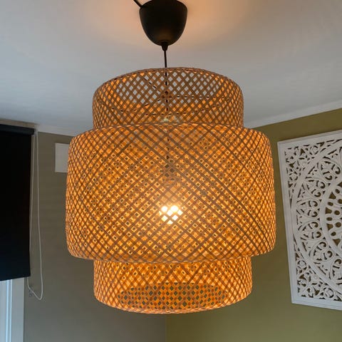 Som ny. Taklampeskjerm i røkfarget glass + sort lampeoppheng
