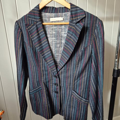 Kjempefin kort blazer fra Top Shop i veldig fin stand. Mørkeblå med duse rosa striper.