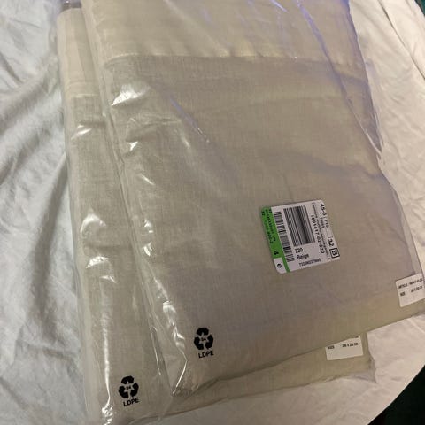 Pris for 2stk beige lystette gardiner 250x250cm 800kr