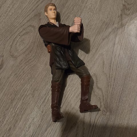 Star Wars Anakin Skywalker actionfigur med en høyde på cirka 15 cm. Figuren har bevegelige ledd og er kledd i karakterens ikoniske brune og svarte antrekk. Laget av plastmateriale, egnet for samling eller lek.