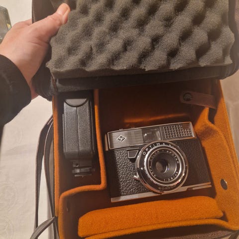 Agfa Isolette V mellomformat filmkamera, ideell for samlere og analoge fotoentusiaster. Kameraet er i utmerket stand, uten synlige riper, og alle funksjoner fungerer perfekt.