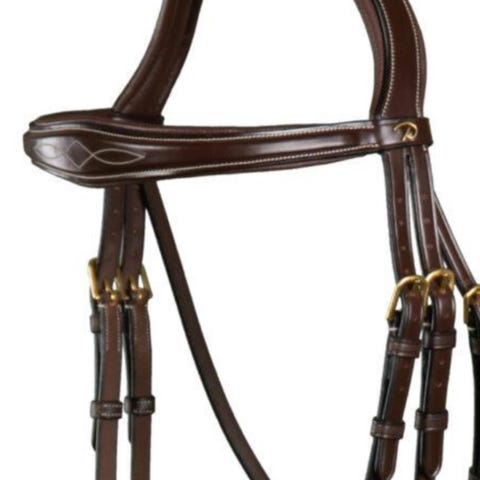 Det anatomiske snittet gir mye større frihet for ørene og også kinnbenet. Svært mykt polstret. I høykvalitetsskinn, med beslag i rustfritt stål. Kan brukes med og uten bitt. Det er i str cob.
