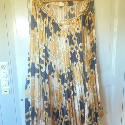 H&M Grå Skjørt i størrelse XL med rutemønster i hvitt, grått og gult. Laget i strikket materiale, designet for kvinner.