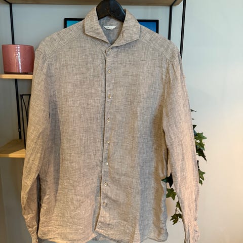 Grønn/grå melert skjorte fra BOSS, casual fit, i myk linblanding med diskret struktur.