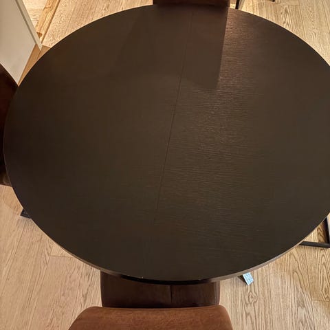 Selger et rundt spisebord fra IKEA i brunt treverk. Det heter Mörbylånga. Solid og slitesterkt bord som jeg dessverre må selge pga flytting. Hentes hos meg i Oslo.