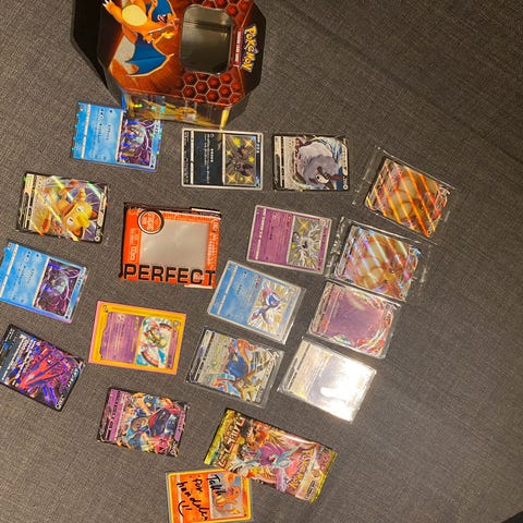 Selger en åpnet boks med vivid voltage pokemon kort. Følger med kortbeholdere og esken, resten er dessverre kastet.