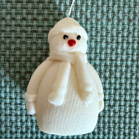 Søt og dekorativ snømann i vinterstil. Perfekt som julepynt eller stemningslys i vinterhalvåret. Pent brukt og hel.