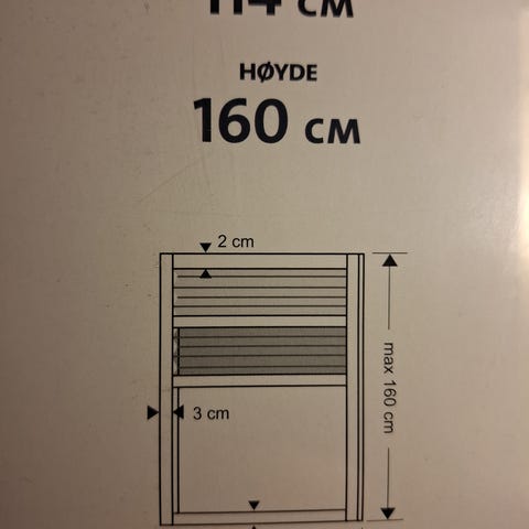 Høgde: ca 193 cm inkl festet oppe og nede.