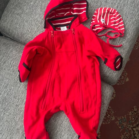 Polarn O. Pyret Rød Babyheldress i størrelse 62. Bomull på innsiden, fleece ytterst.