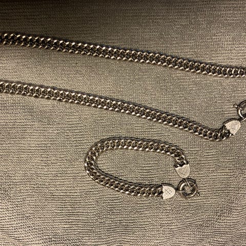 Tidløst anheng i oksidert sølv 925. Kjedet er 44 cm langt. Anhenget kan brukes på begge sider.