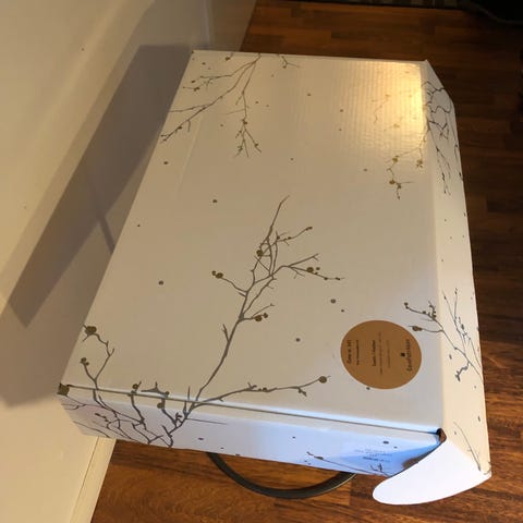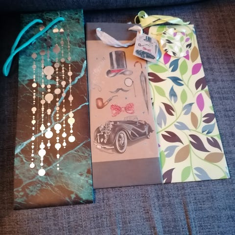 Gaveeske til flaske, veldig pen. 40cm høy og diameter 14cm. Den er polstret innvendig og passer til flaske som tar 1 liter. Veldig fin eske til gave, nå som det snart er jul. Selges kr 100.- Kan sendes med PostNord for kr 69.- (vipps og send) Eventuelt FiksFerdig eller avtale henting.