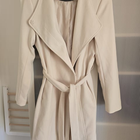 Massimo Dutti kåpe i marineblå farge, størrelse 40 for kvinner. Jakken har dobbeltradet knappelukking med gullfargede knapper og en dekorativ detalj på baksiden. Den er ikke synlig brukt, jeg har ikke funnet noen bruksmerker. Pris kr 800