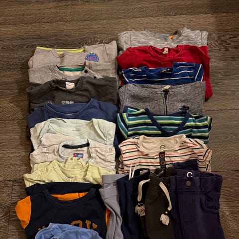 Stor klespakke for gutt ca str 152. Se bilder for størrelse på hvert plagg. Noen av plaggene er nesten ikke brukt, andre godt brukt. Merker: GAP, Zara, Champion, Cubus ++