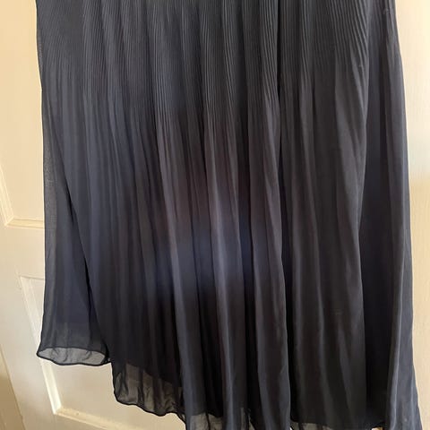 Skjørt i svart farge med lag på lag volanger. Størrelse M, designet for kvinner. Materialet er lett og gjennomsiktig med flere lag som gir tekstur og volum.