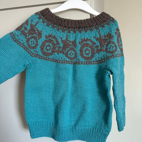 Håndstrikket genser i myk, kløfri ull. Ingen bruksmerker. Mål fra skulder og ned 29 cm, bredde 27 cm, Kan sendes