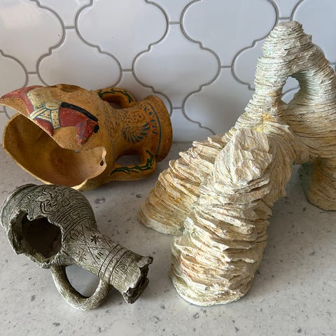 Trenger nye dekor-steiner, planter og små rensesteiner til å ha under filter.
