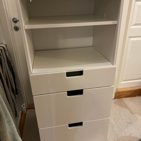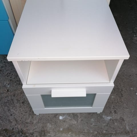 Selger 2stk IKEA BRIMNES nattbord. Et er pent brukt og et mer synlig brukt. Trenger ny strek maling eller lime på med valgfritt tapet/folie. Har testet med tre motiv, se bildet. Selger samlet.